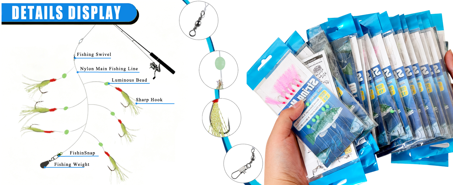 🐟2.[FULL COMBO SET] Glow beads + rubber + bright silk + fishing line + rolling swivel interlock snap connectors. Makes it user-friendly and efficient.