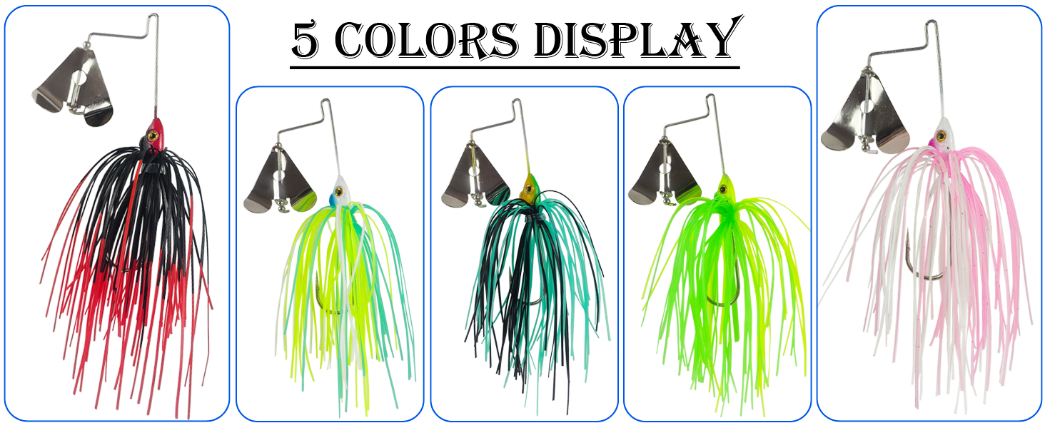 🎣4.NECESSARY TOOL: The chatter baits come in 5 colors to attract bass and other species, and is known for triggering bites。Buzzbait is a great tool for locating bass in the shallows, also an important one for finding fish.