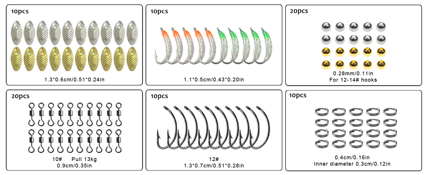 Item Type:Tying Line+Metal Sequins+Animals Hair+Swivels+Beads+Hooks