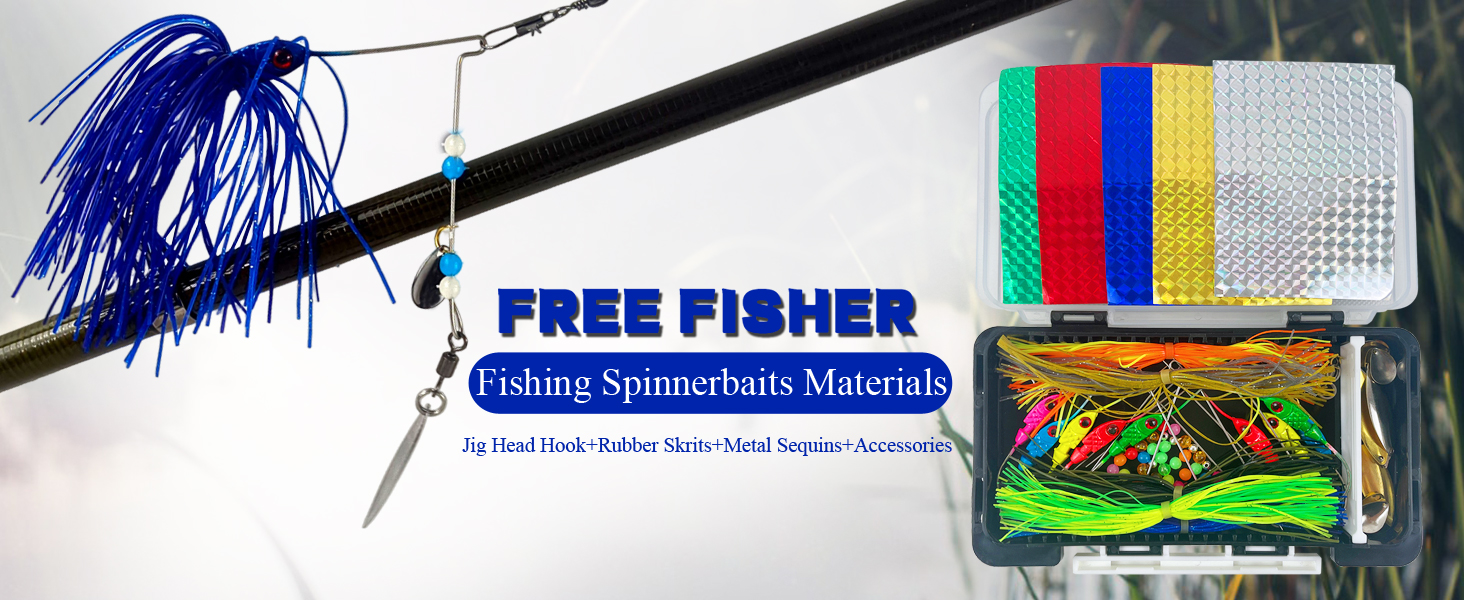 FREE FISHER 148pcs Fishing Spinnerbaits Materials Metal Sequins Set Buzzbaits Rubber Skirts Beads Blades Swivels Laser Paper for Bass Trout