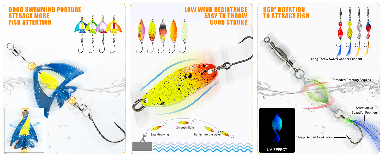 🎣5.Perfect for fishing enthusiasts, from anglers to beginner eager to enhances their skills and enjoy the thrills of the catching.Whether you're fishing in lake and rivers or ventures into saltwater, this set is to effectively attract a wide ranges of fish species.