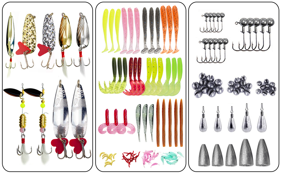🎣1.Hard Lures:Plastic Lures:Minnow,Popper,VIB,Crankbait,Plug.Metal Baits:Spoons,Spinnerbaits are allavaiable. FREE FISHER Fishing Lures Kit is a great companion for fishing enthusiasts!