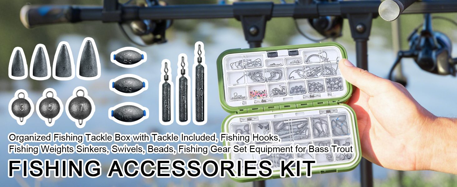 FREE FISHER 306pcs Fishing Weights Set Mixed Lead Sinkers Crank Jig Hooks Bait Lure Acceccories Swivels Snaps Beads with Multigrid Box for Sea Fishing
