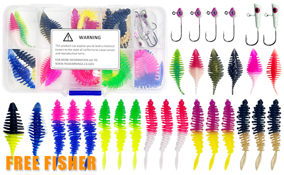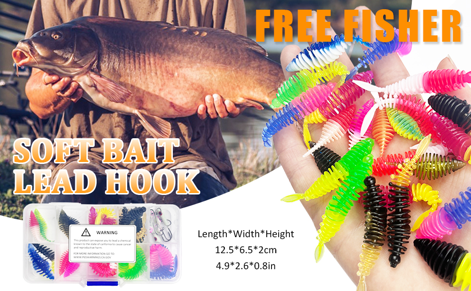 FREE FISHER 30pcs/Box Fishing Soft Baits Set Sinking Jig Hooks 3.5-5.5cm Lifelike Worms Lures Artificial Bait 0.5-2g Jigs Fishing Tackles