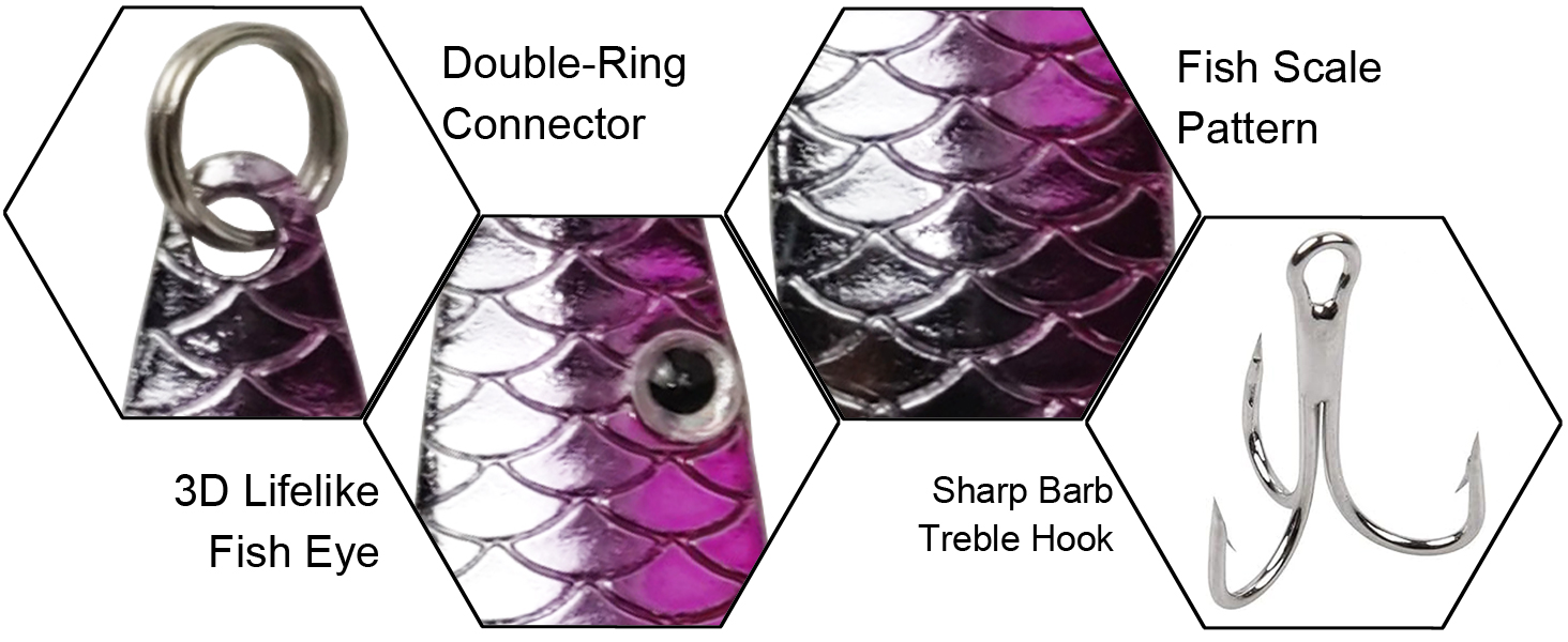 4.🐟【WIDE APPLICATION】These spinning fishing lures widely target predator fish such as bass, trout, walleye, salmon, muskfish, pike, big bluegill, perch, crappie, panfish, catfish. Suitable for both freshwater and saltwater.