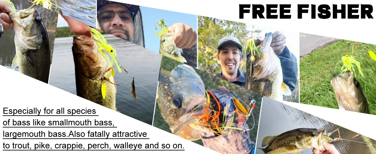 🎣2.REALISTIC LOOK & ACTION: This spinner lures feature a 3D eyes and 50-strand skirts in naturalized but enticing colors to trigger strikes. The windwill blades create the easiest and fastest spinning action possible, send out sonic vibrations that entice fish, increasing your chances of making a catch.