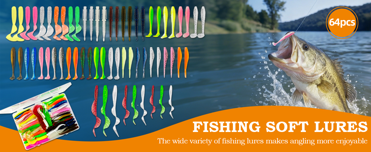FREE FISHER 64pcs/Lot Fishing Soft Lures Kit,Worm Grubs Baits,Tail Swimbaits,Fishing Tackle Gear Box for Freshwater/Saltwater