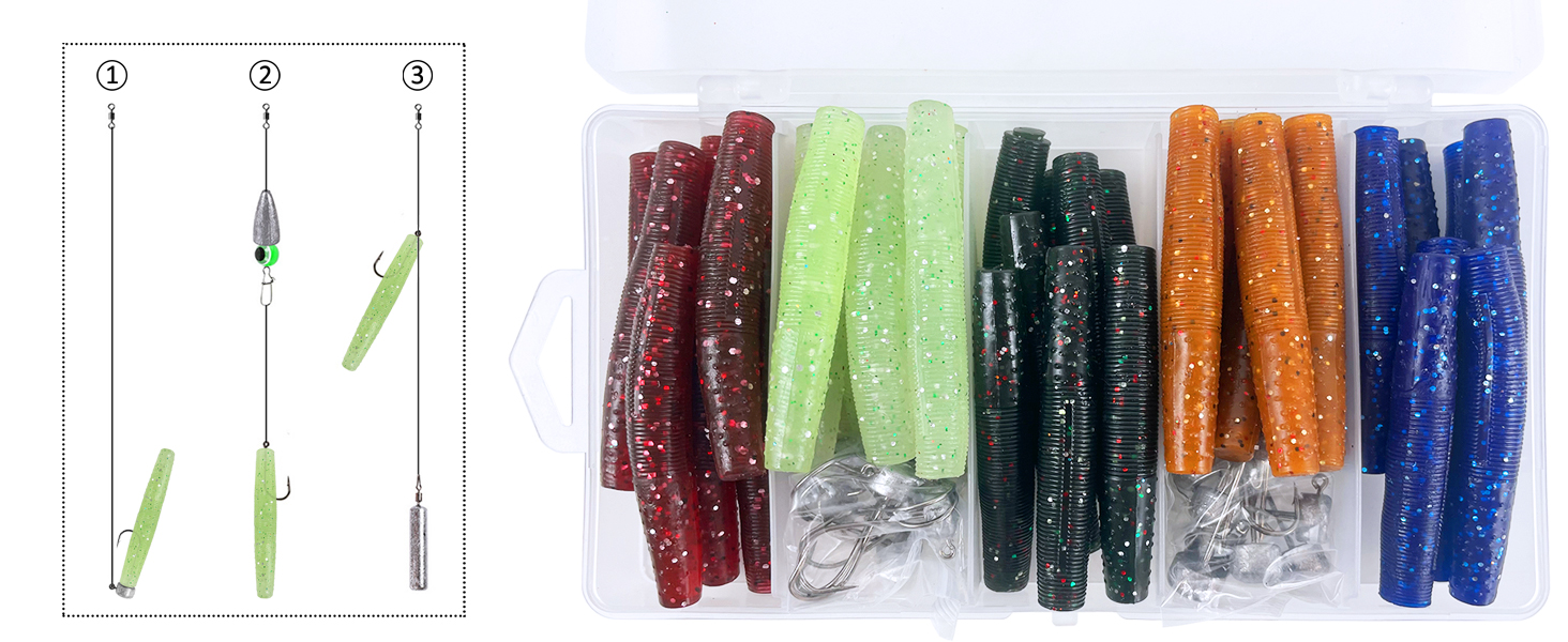 🐬2.Soft Stickbaits--Soft Plastic TRD Worms Baits,easily to resist the fish bite,combination of softness, toughness & certain salt content plus compact profile.