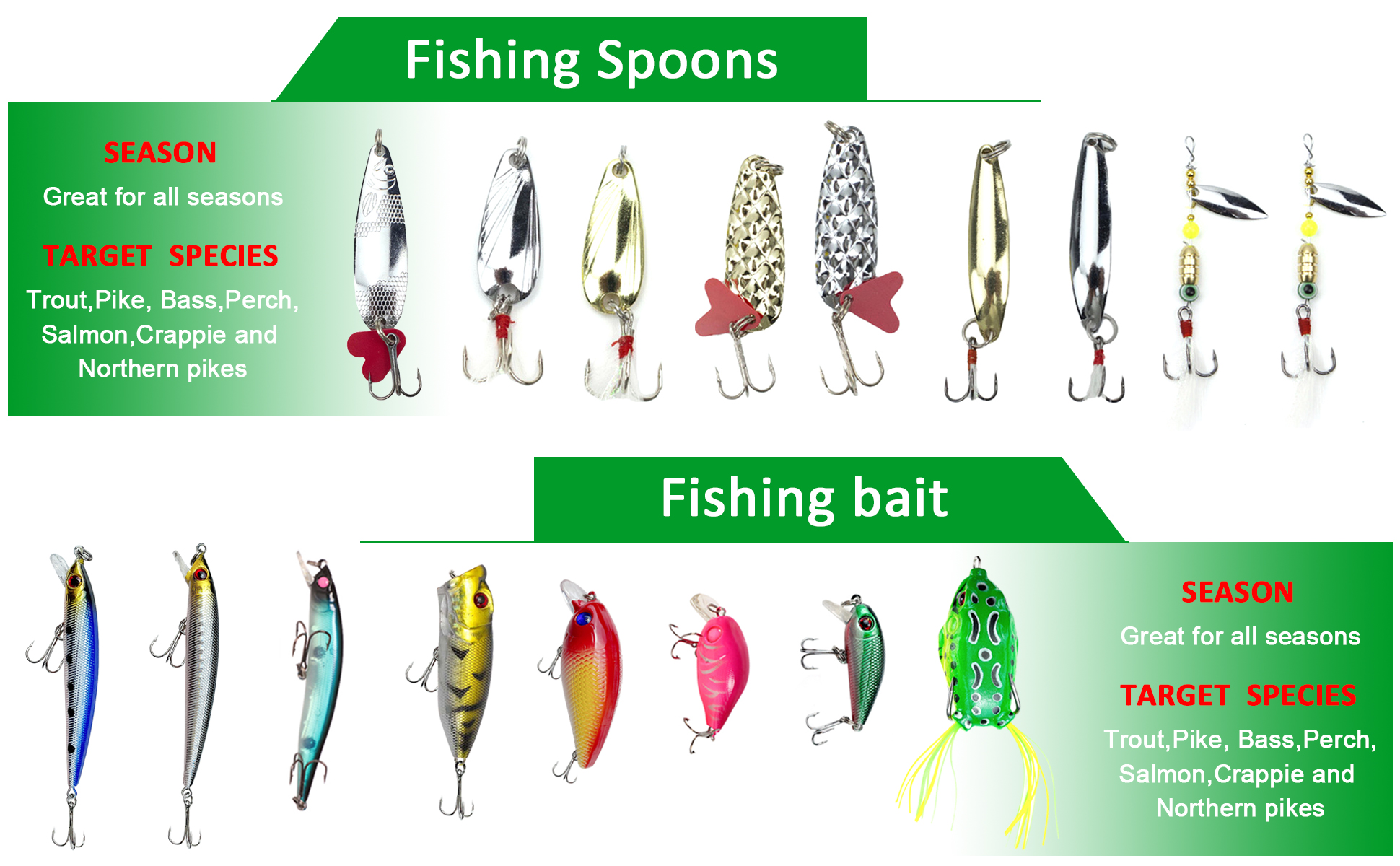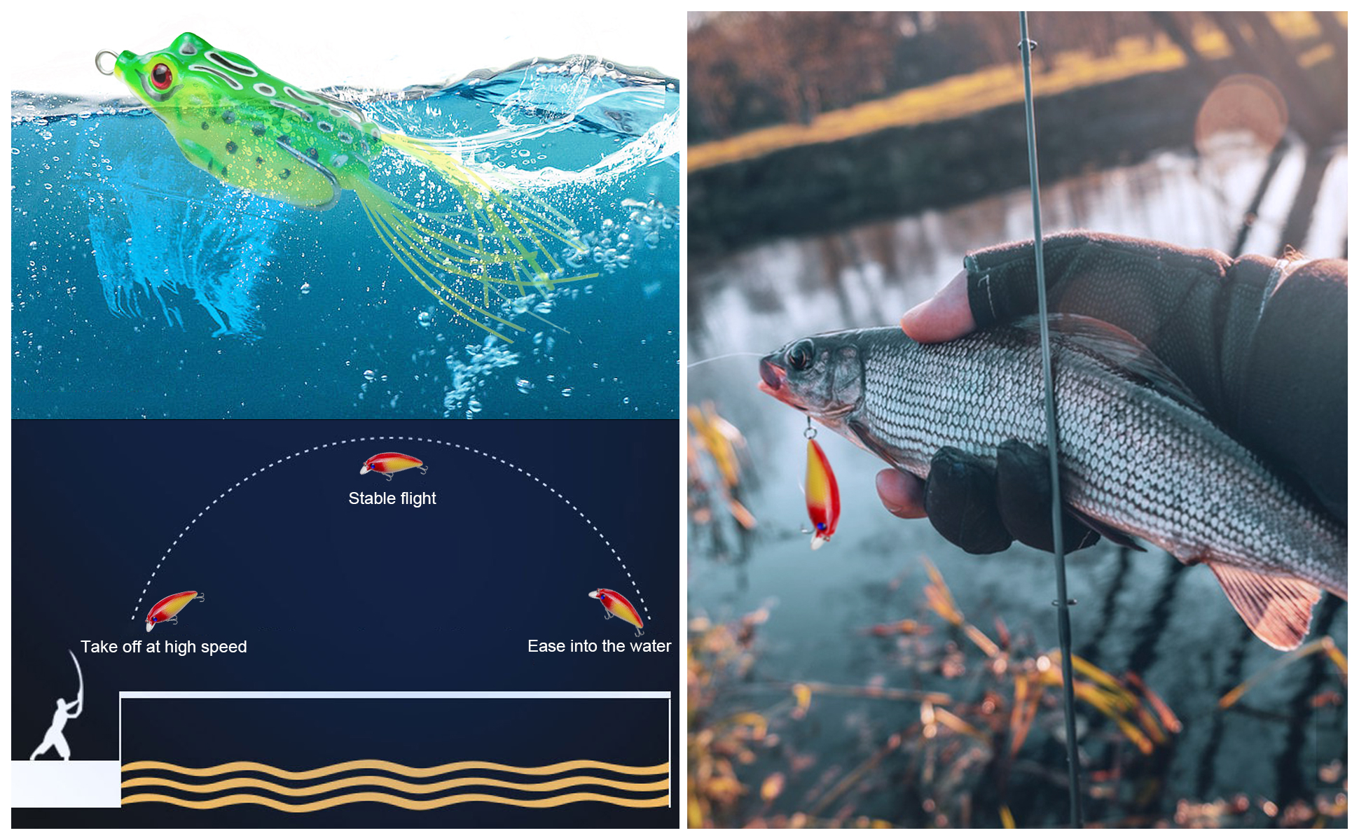 🎣4.Wide Applications:Different fishing lures, including crankbait, soft baits, minnow, spinnerbaits, jigs, large frogs and worms. Lures of different materials and sizes are available. They are suitable for both salt water and fresh water and work well in all layers of water.!