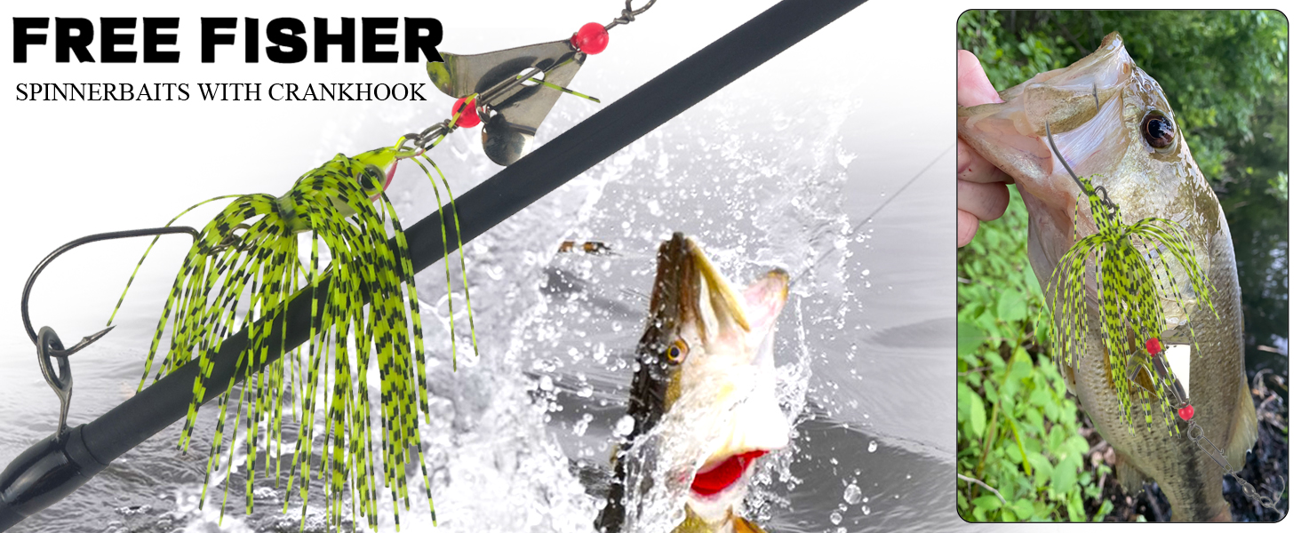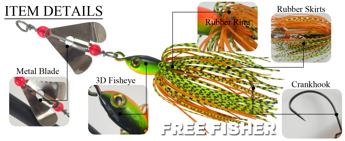 Material:Metal Spinners+Rubber Skirts+Fish Head+Crankhook