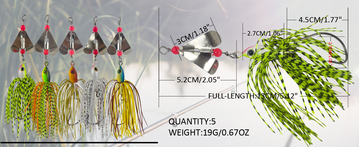 FREE FISHER Fishing Spinner Baits,5pcs/Lot 13cm 19g Metal Blade Buzzbaits,Trout Fishing Spinnerbaits,Chatterbaits Swim Jig Lures