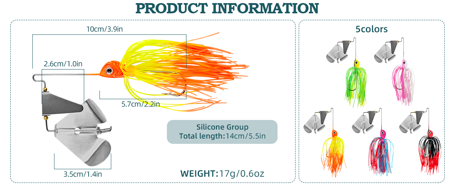 🎣4.Versatile and Effective: Whether you're a beginner or an experienced angler,Buzzbait is a versatile tool in your fishing kit. Designed for use in various water conditions, this bait offers excellent performance in shallow waters, around weeds, or near submerged rocks. It's a must-have for bass fishing enthusiasts looking for consistent results.
