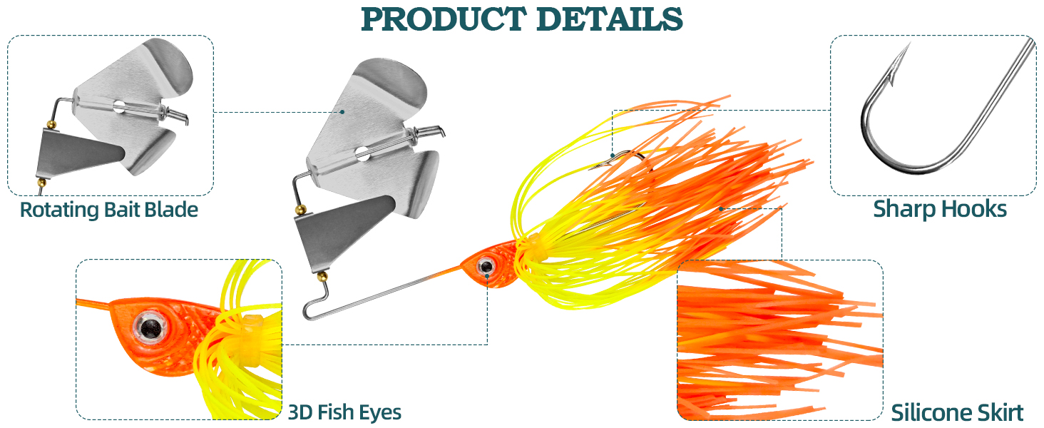 🎣3.Quality Materials:Buzzbait features a rugged construction with a high-quality hook and a durable silicone skirt that resists wear and tear, ensuring long-lasting performance. Whether you're fishing in freshwater or saltwater.
