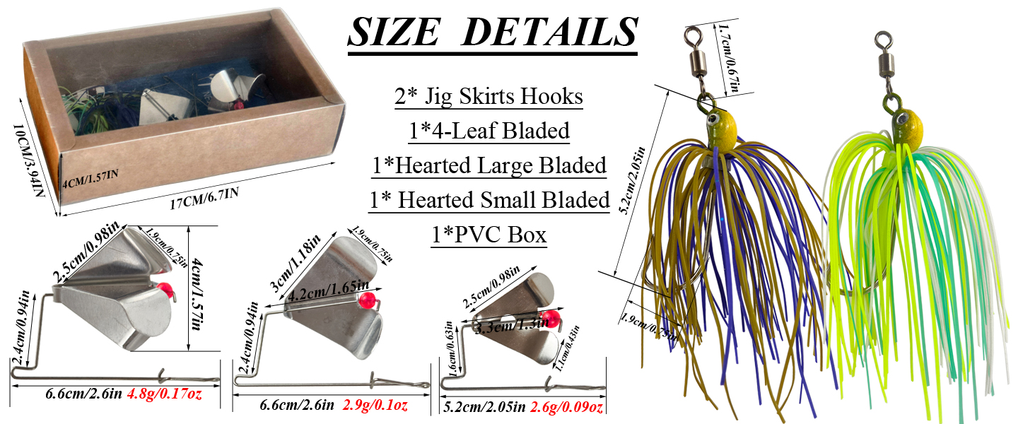 🎣3.Features:It can be freely DIY combined and matched according to fishing environment and fish species category, and is highly favored by fishing enthusiasts. (Note:Mystery box shipping, rubber skirt color is random)