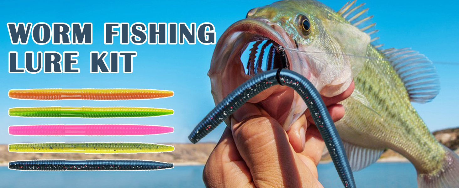 FREE FISHER Wacky Worms Lures Kit,50pcs/Box Soft Stick Baits,14cm 8g Fishing Soft Grub Lures,Swimbaits for Freshwater Saltwater