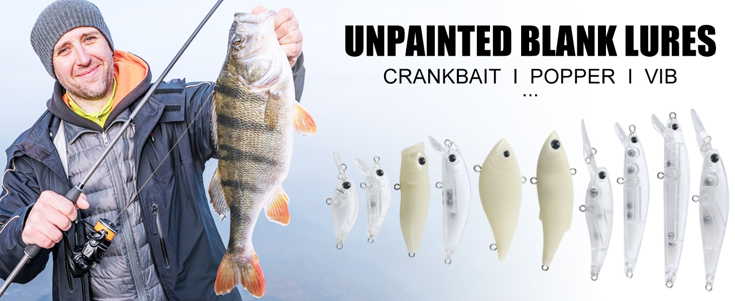 FREE FISHER Unpainted Lures Kit,30pcs/Lot Fishing Hard Baits,Mixed Minnows VIB Crankbaits Popper,DIY Blank Artificial Fish Baits