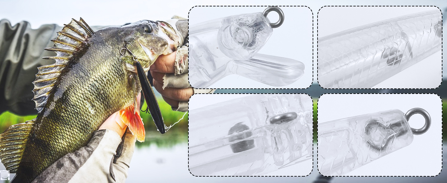 🎣1.Material--Made of high-quality ABS plastic, with high transparency and no coloring. The scales on the bait body are obvious, which is convenient for DIY.