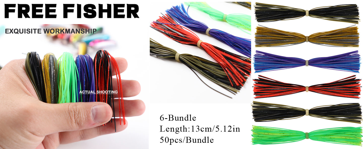 FREE FISHER 6 Bundles Silicone Spinnerbait Skirts 13cm Replacement Jig Spoon Blade Frogs Fishing DIY Buzzbaits Rubber Wires Assorted Colors